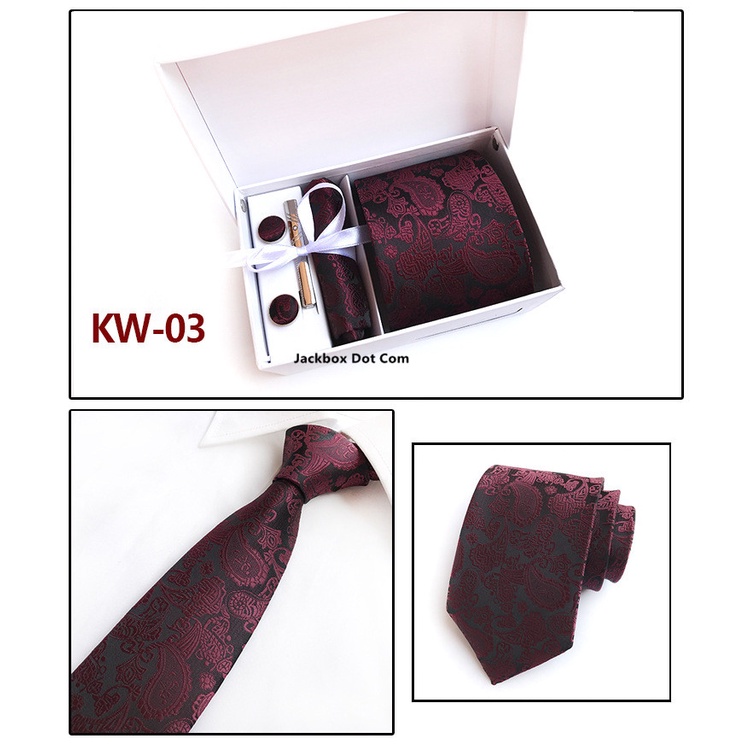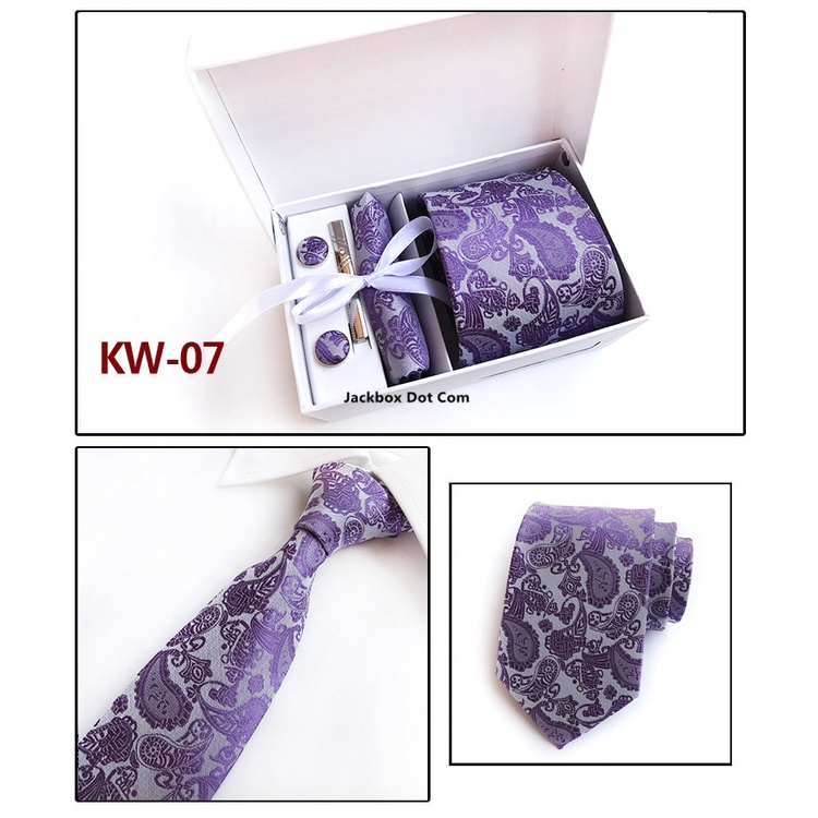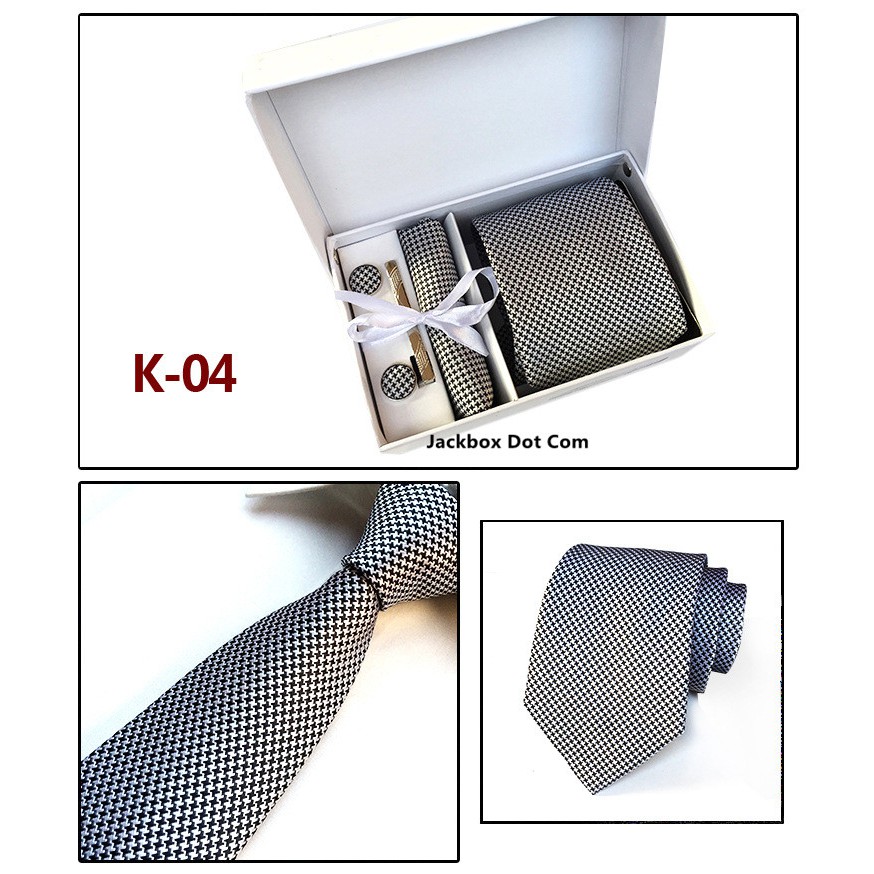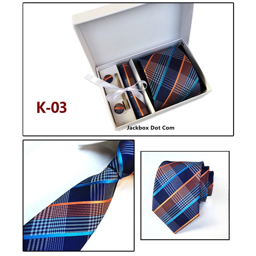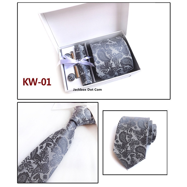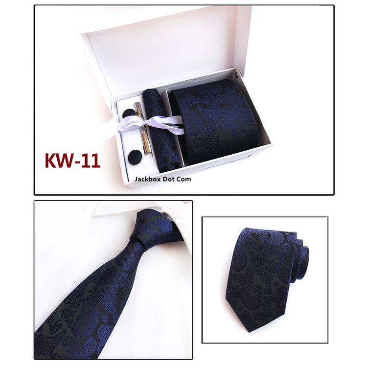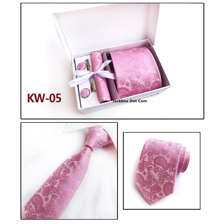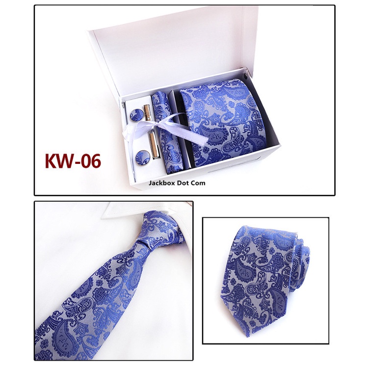 [23 Designs M'sia Ready Stock] 5 Pieces Set Gift Box Business Formal Necktie Handkerchief Cufflink Mens Tie 601