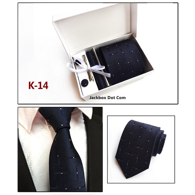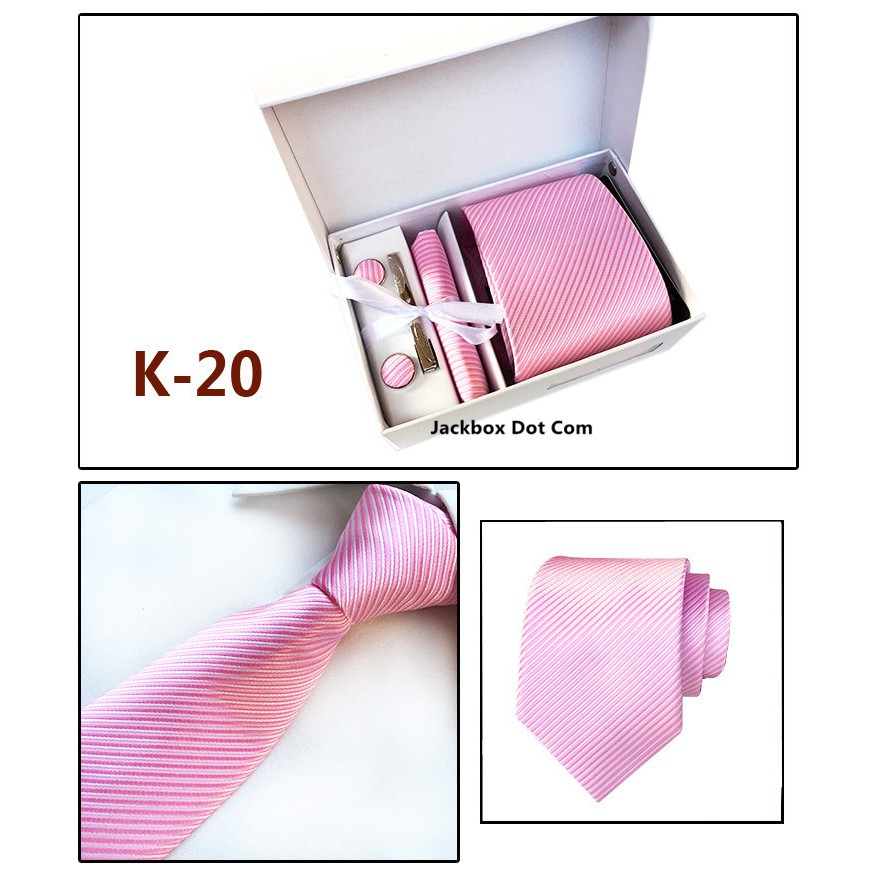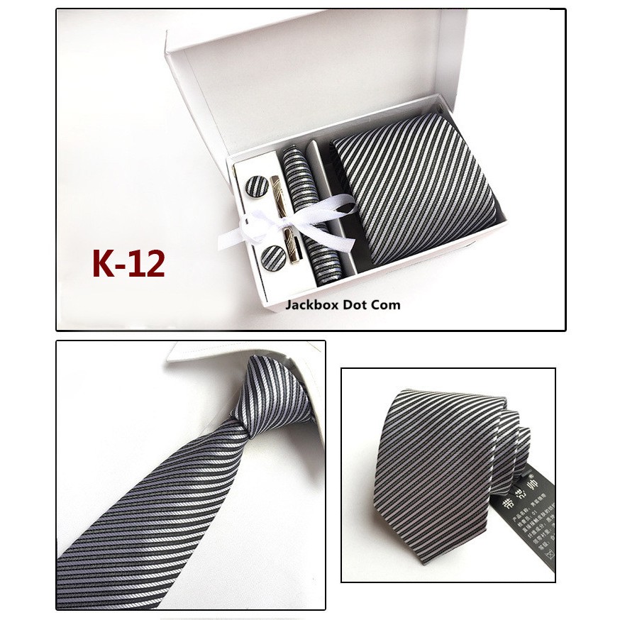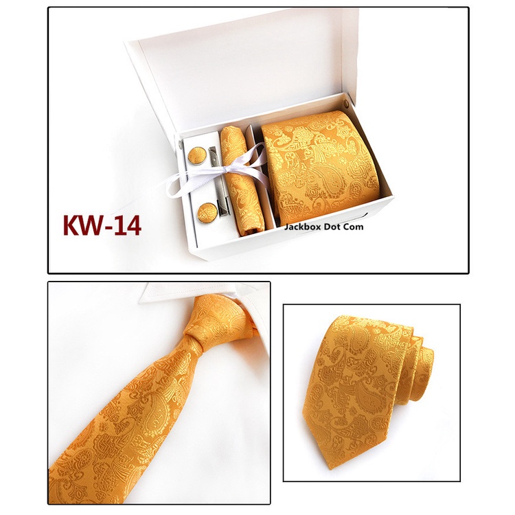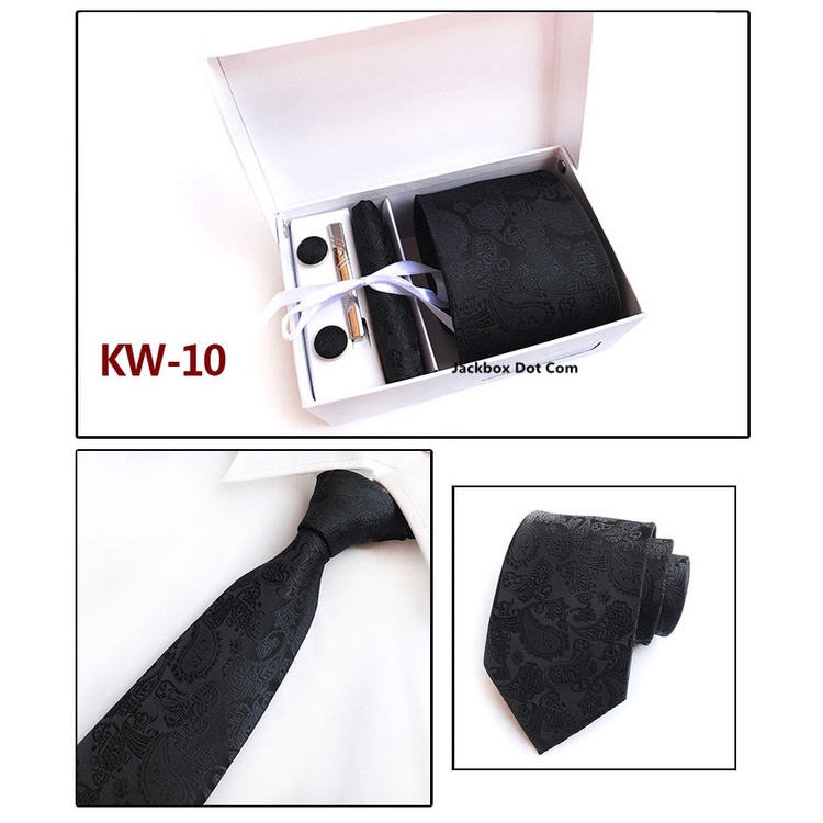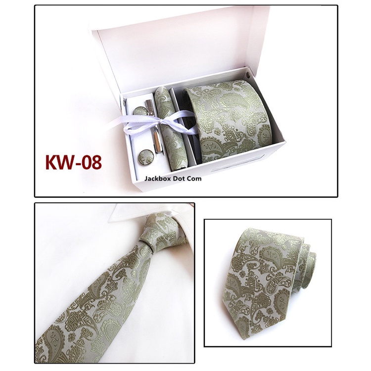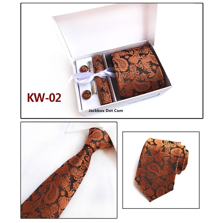 [23 Designs M'sia Ready Stock] 5 Pieces Set Gift Box Business Formal Necktie Handkerchief Cufflink Mens Tie 601