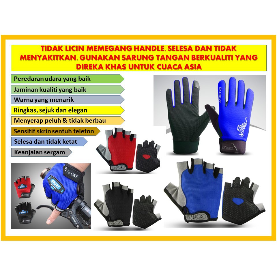 [M'sia Ready Stock] D11 ; SARUNG TANGAN BASIKAL GLOVES MENGELAKKAN LICIN DAN KEBAS TANGAN. KAYUHAN LEBIH SELESA