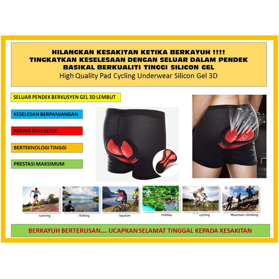 [M'sia Ready Stock] JSA0075; TINGKATKAN KESELESAAN DENGAN SELUAR DALAM PENDEK BASIKAL BERKUALITI TINGGI SILICON GEL 3D