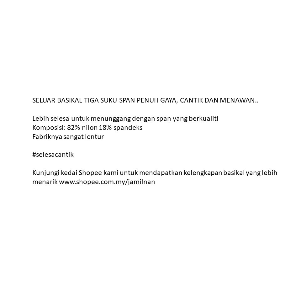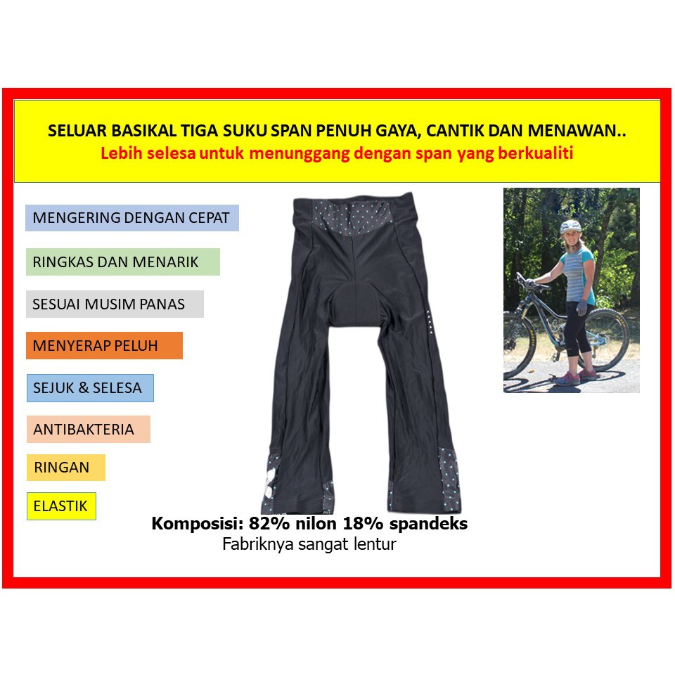 [M'sia Ready Stock] JSA0104 ; SELUAR BASIKAL TIGA SUKU HITAM BERSPAN . BLACK PADDED THREE QUARTER BIKE JERSEY