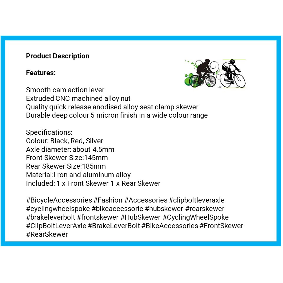 [M'sia Ready Stock] K51: 2pcs/set Bike Wheel Hub Skewers Quick Release Bolt Bicycle axle skrew roda mudah buka