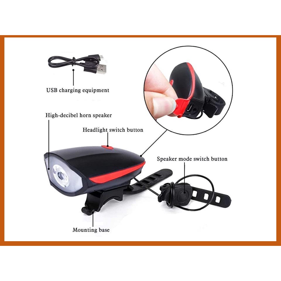 [M'sia Stock] LAMPU BASIKAL LOCENG CAS SEMULA BIKE LIGHT AND HORN COMBO 2 IN1, RECHARGEABLE BICYCLE LIGHT WATERPROOF