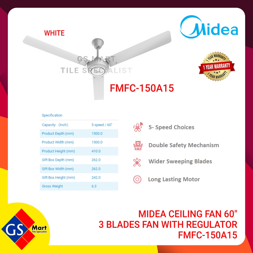 [MAX 4UNITS PER ORDER] KDK Ceiling Fan 60" 3 or 4 Blades W/Regulator / Silver/ Copper Brown/Brown / Kipas Siling 3 Bilah