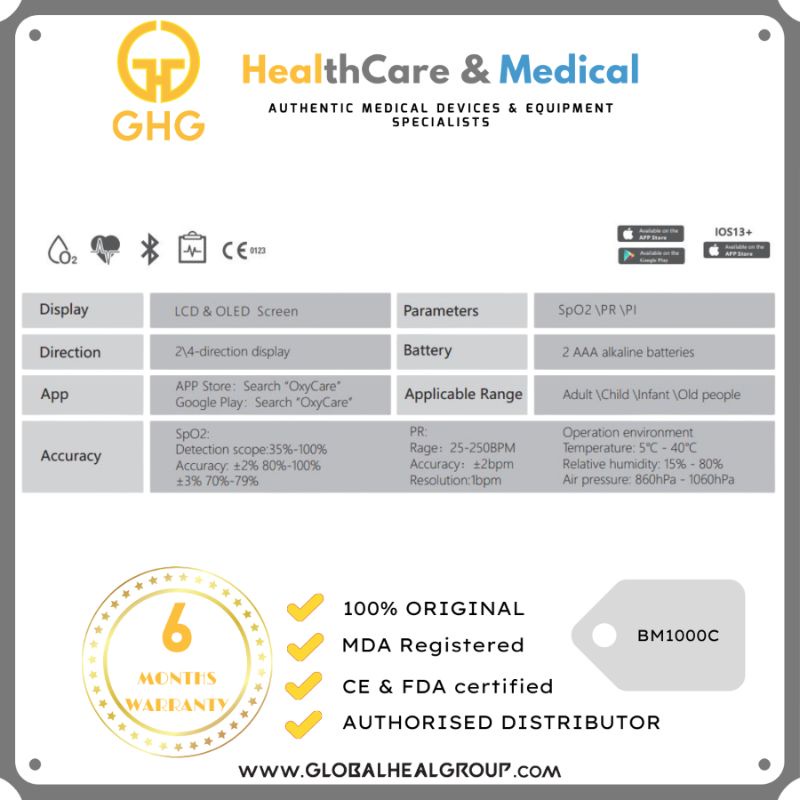 [MDA Approved Oximeter] - BERRY SMART BLUETOOTH Fingertip Pulse Oximeter [GHGOUTLET]