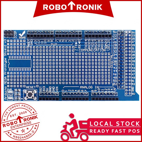 [MEGA] Prototype (Proto) Shield V3 w/ Breadboard - Compatible Arduino MEGA 2560
