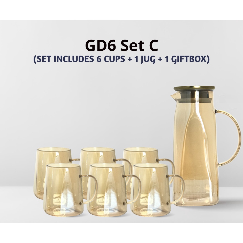[MEGA SALE] Glass Drinkware sets (6/8 cups set_Creative design_Glass Jug_Pitchers_Drinking glass_Gift set)