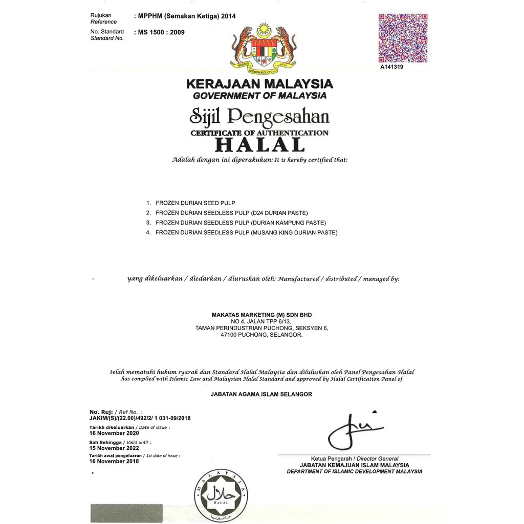 [ MUSANG KING PASTE ] High Quality Durian Export Grade A Halal D197 100% Pure Durian Paste