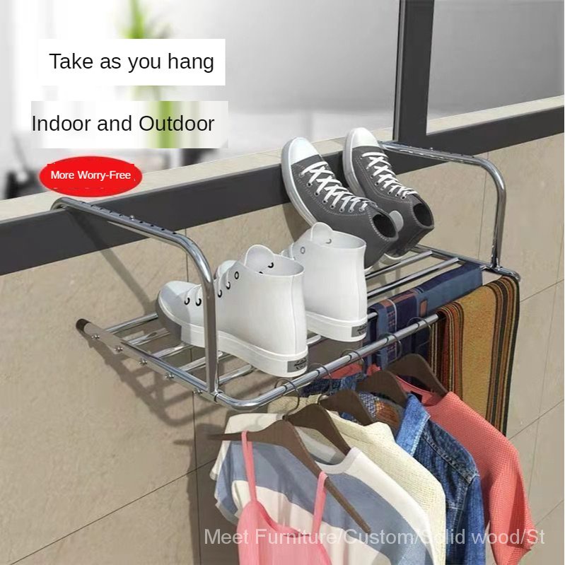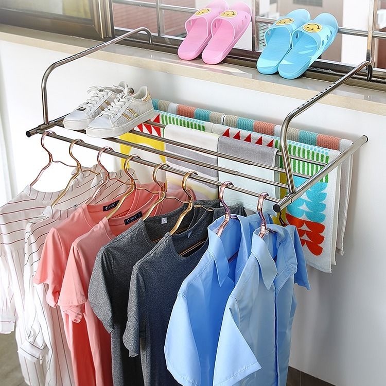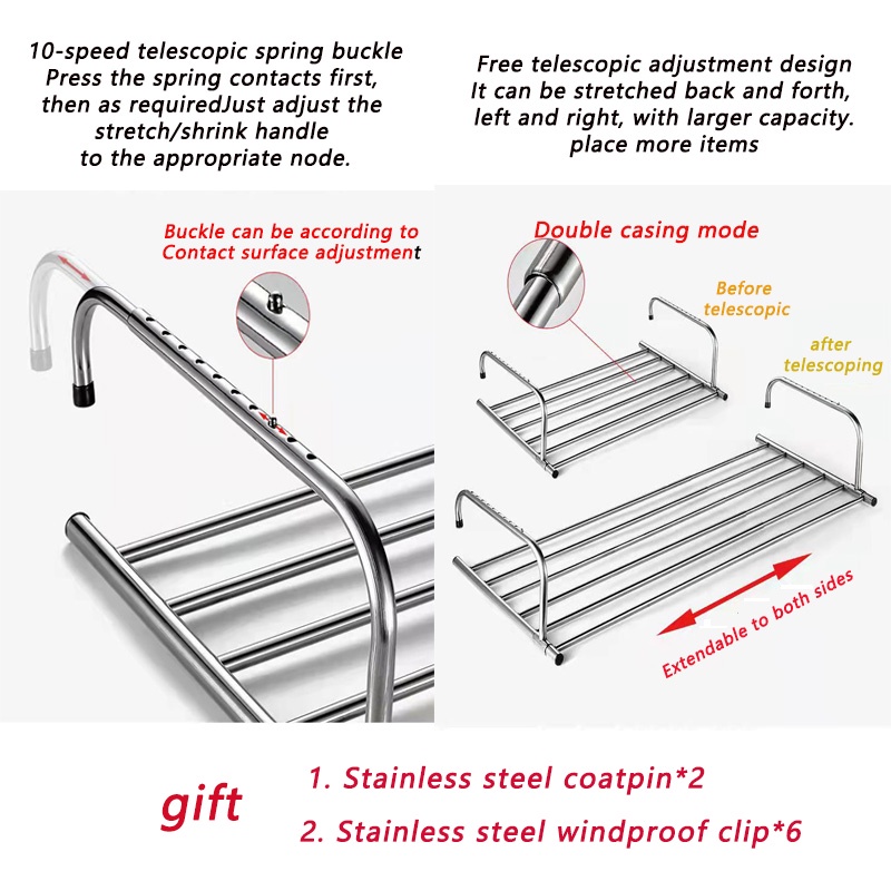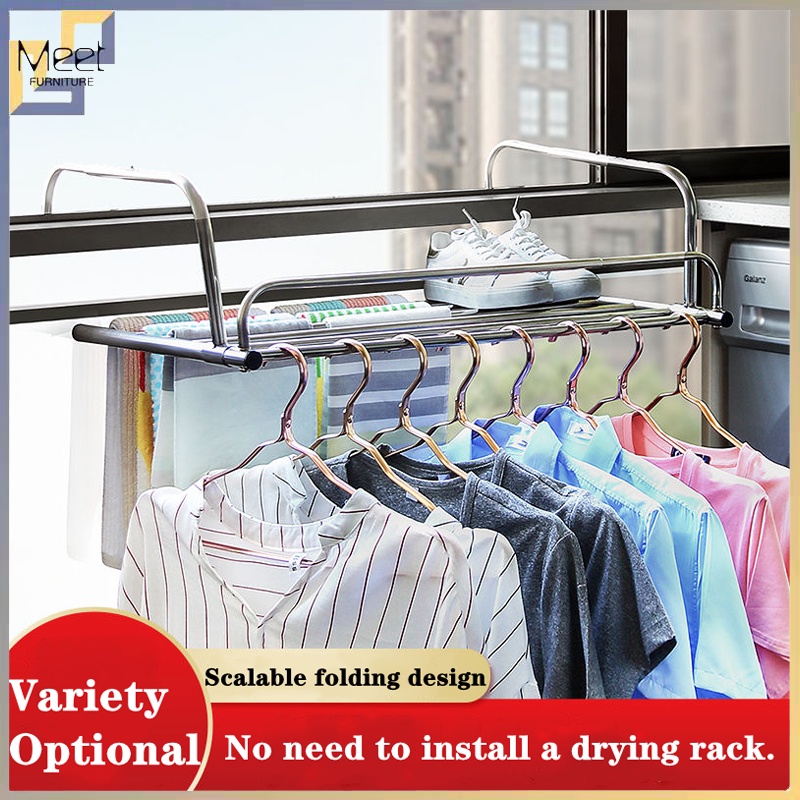 [MY READY STOCK] Retractable Balcony Drying Rack Hanger Stainless Steel Foldable Window Sill Cloth Rack Small Clothes Hanger Laundry Cloth Indoor Outdoor