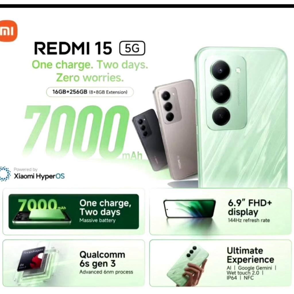 [MY Set] Redmi 15 5G (256GB ROM | 8GB RAM) 1 Year Xiaomi Malaysia Warranty