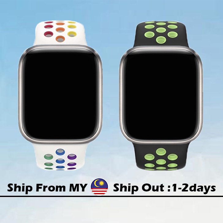 Silicone Sport Band Fluoroelastomer for iWatch Series1/2/3/4/5/6/SE/7/8/SE2/9/10/SE3/11/Ultra1,2,3