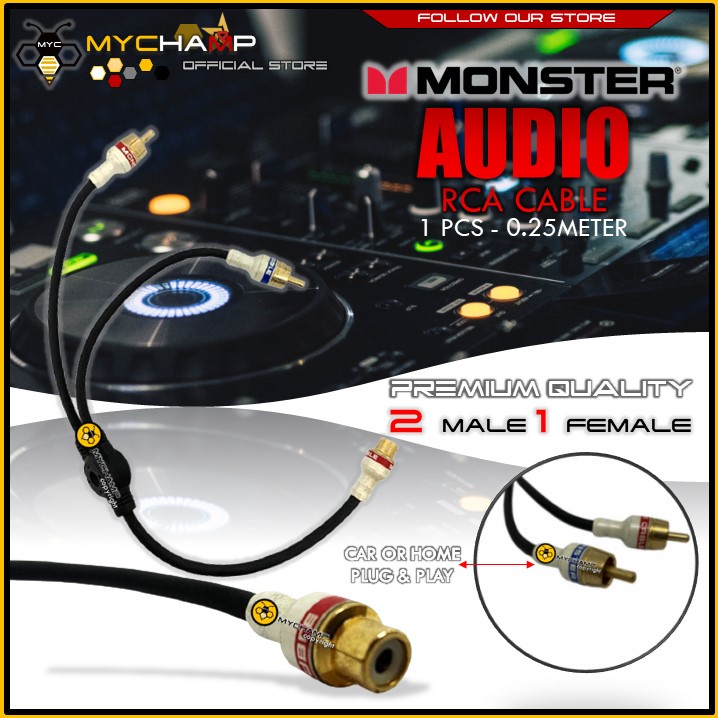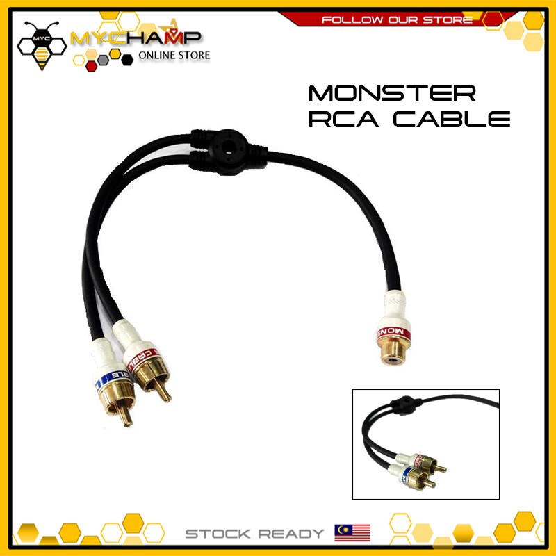 [MYC] RCA AUDIO CABLE Y ADAPTER SPLITTER 1FEMALE-2MALE - MONSTER/BLACK