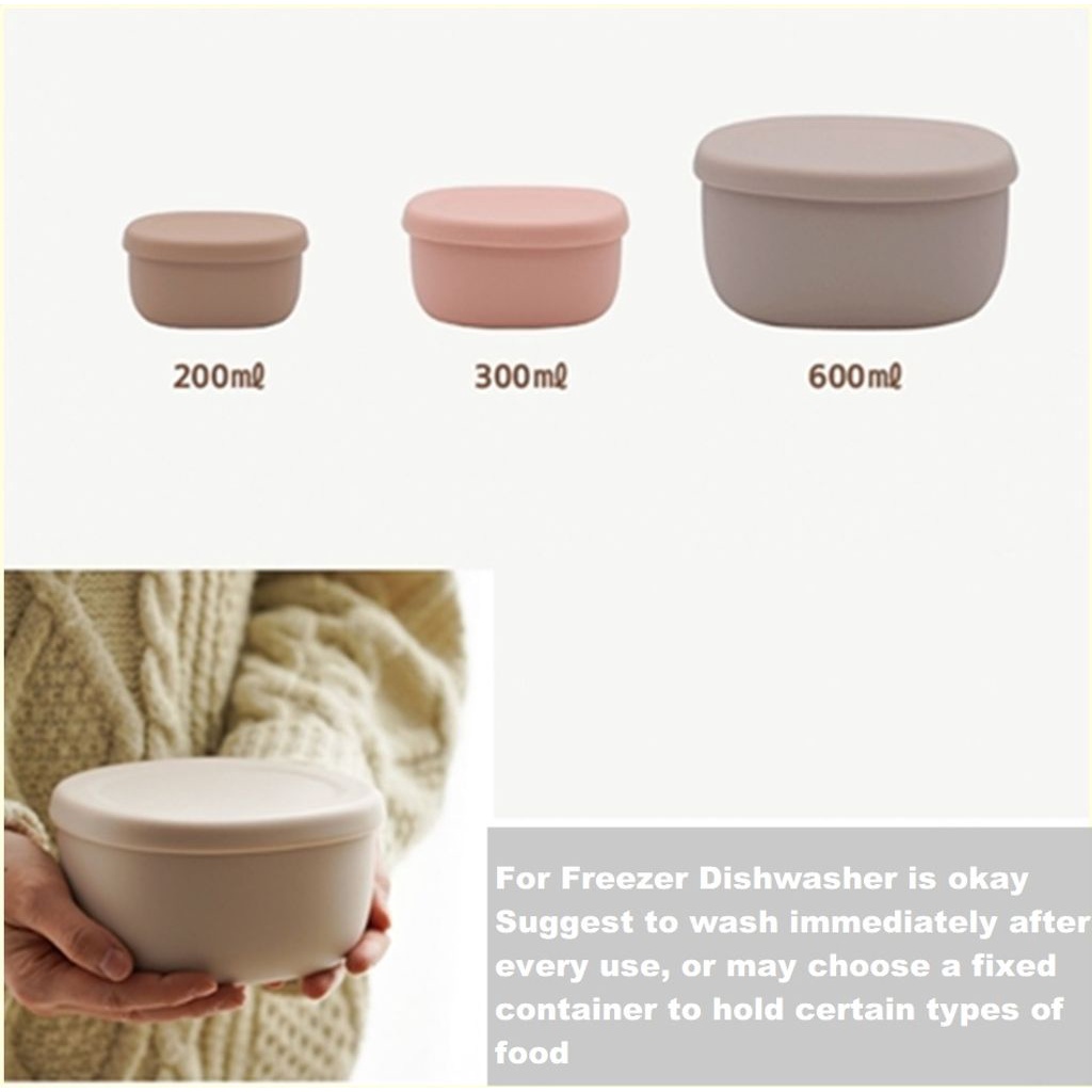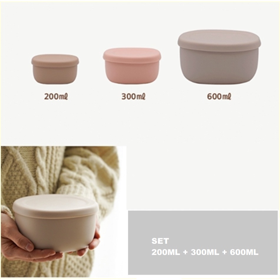 [Made in Korea] 3pcs Silicone Container Baby Feeding Storage Microwavable Leak proof Lunch Box 100% Pure Silicone Bento box