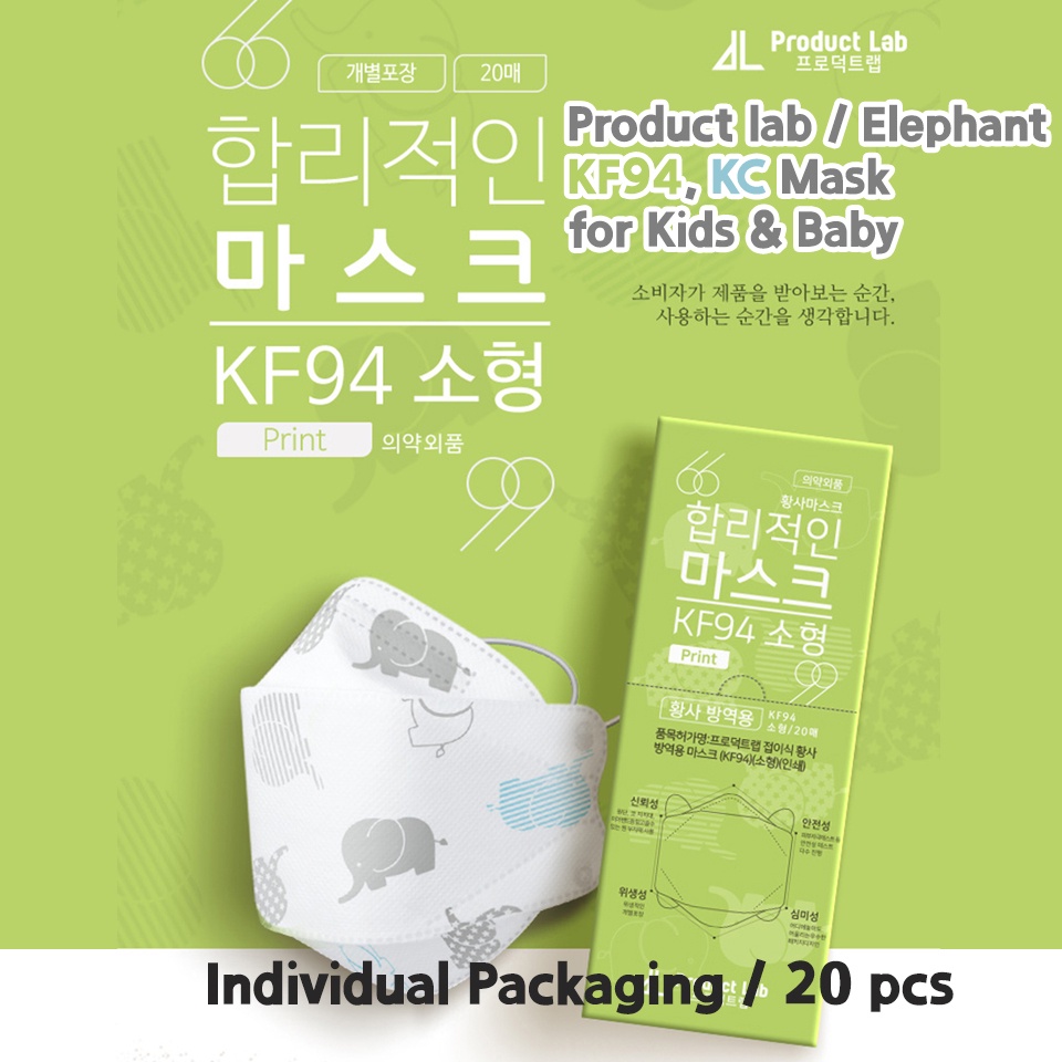 [Made in Korea] Product lab Elephant KF94, KC mask for Kids, Baby / 4 PLY Disposable Face Masks / 20 pcs box