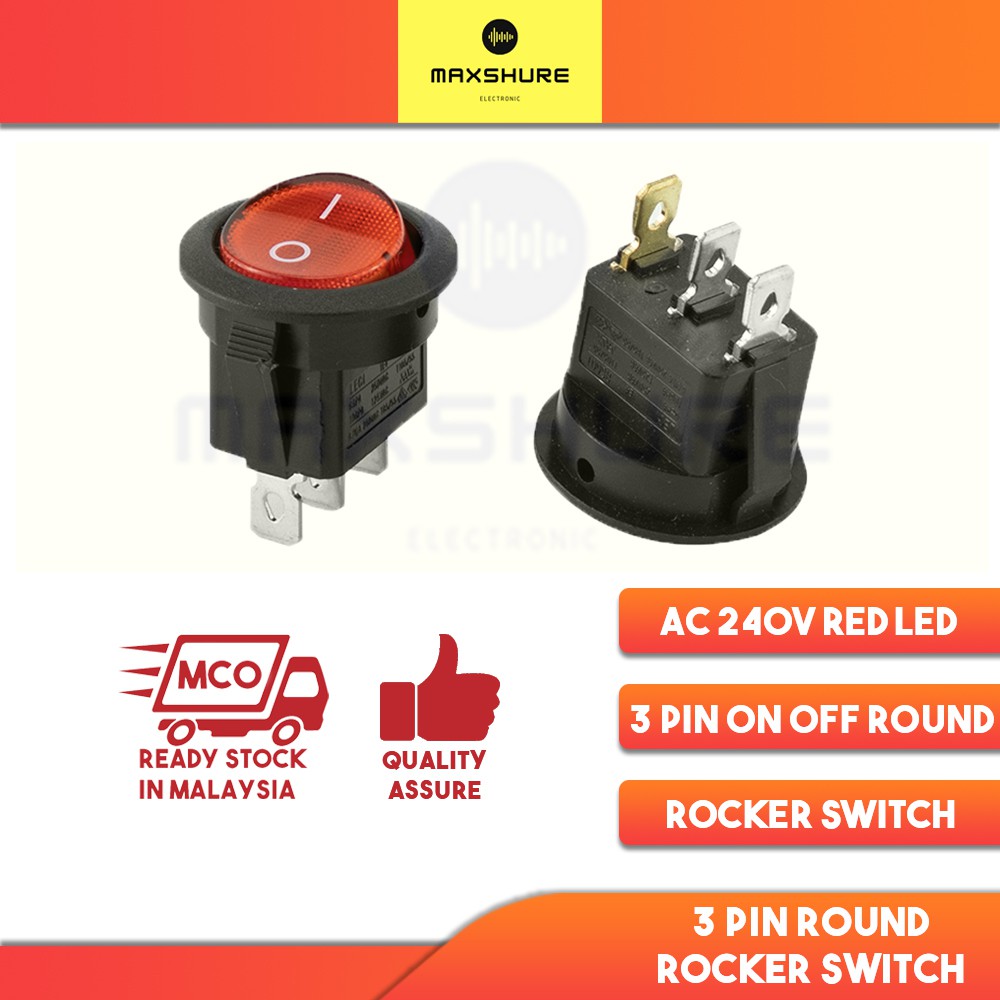 [MaxShure] 3 Pin / 4 Pin AC 240V SPST LED Round / Square Rocker Switch
