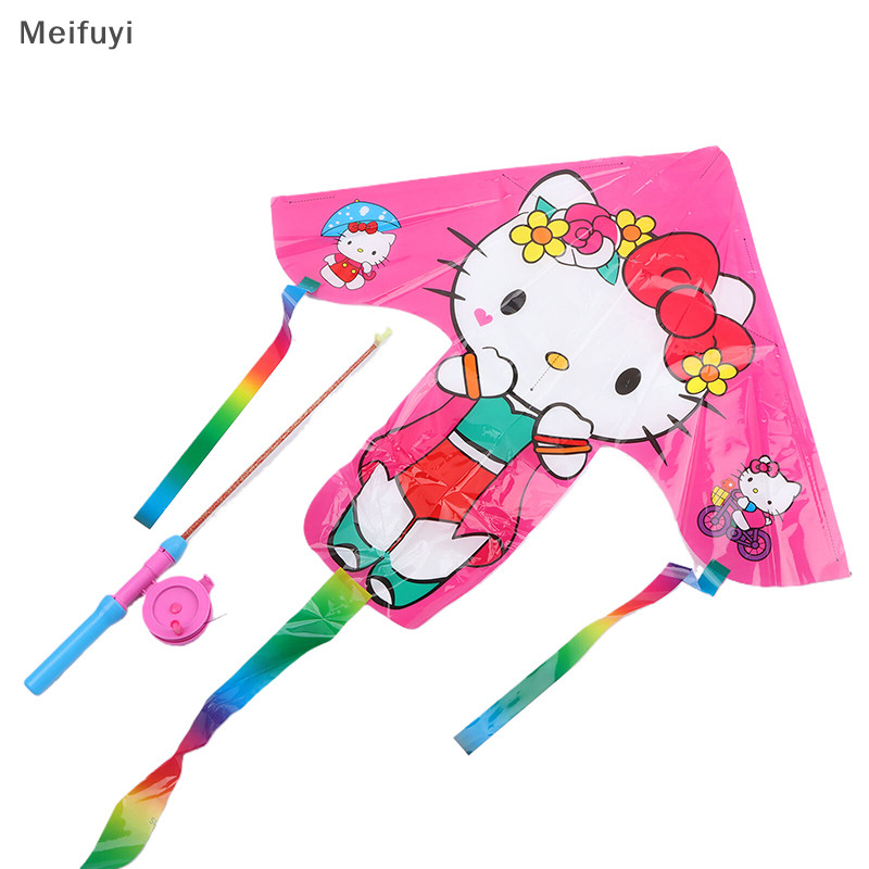 [Meifuyi] 1 Set Cartoon Swallows Kite With Handle Kids Flying Kite Outdoor Toys Children's Handheld Fishing Rod Kite COD