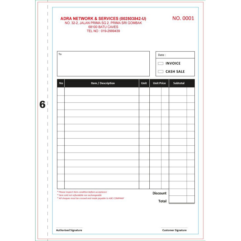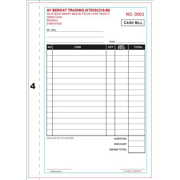 -Min Order 1 buku- BUKU RESIT/ BILLBOOK / RECEIPT / FORM -2ply