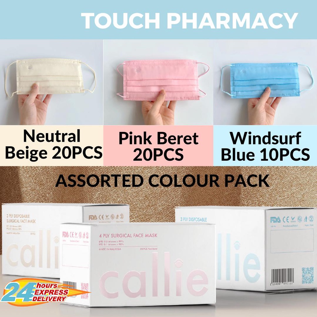 CALLIE MEDICAL MASK- 4 Ply 50pcs / KF94 20pcs/ 3D 20pcs Surgical Adult Face Mask (Pink, Blue, Neutral Beige)