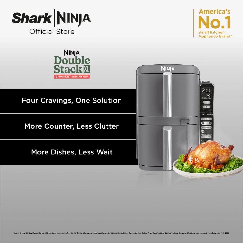 Ninja DoubleStack XL 9.5L Air Fryer / Dual Basket to cook up to 4 Foods at one time - SL400/SL451