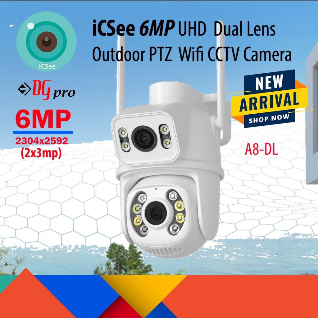 [NEW ARRIVAL] iCSee 6MP 3K Dual Lens / Dual Screens Weatherproof Outdoor PTZ 360 Rotatable Wireless WIfi CCTV Camera