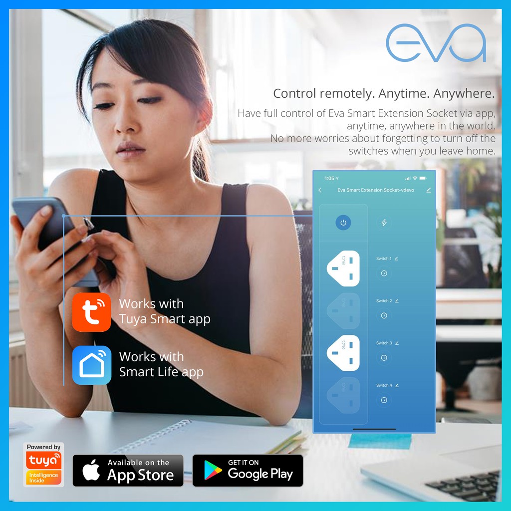 [NEW] Eva Smart Extension Socket Cord with Power Monitoring Works on Tuya Smart Life supports Alexa, Google Home, TMall