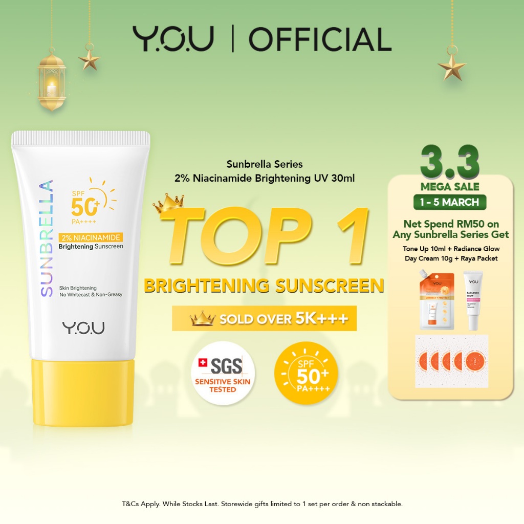 YOU TOP 1 Brightening Sunscreen Sunbrella 2% Niacinamide Sun Protector SPF50+ PA++ 30ml Sunblock Pelindung Matahari