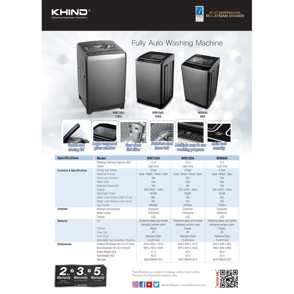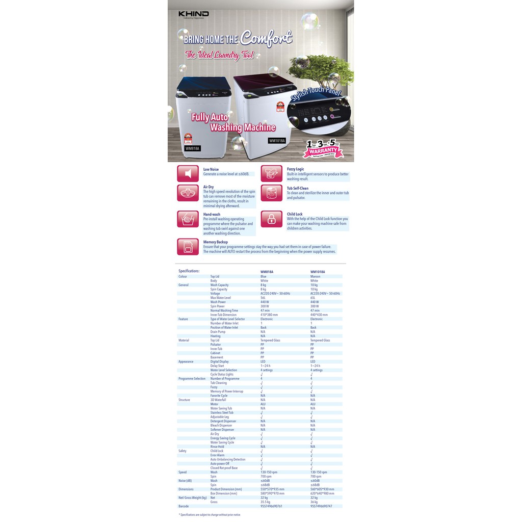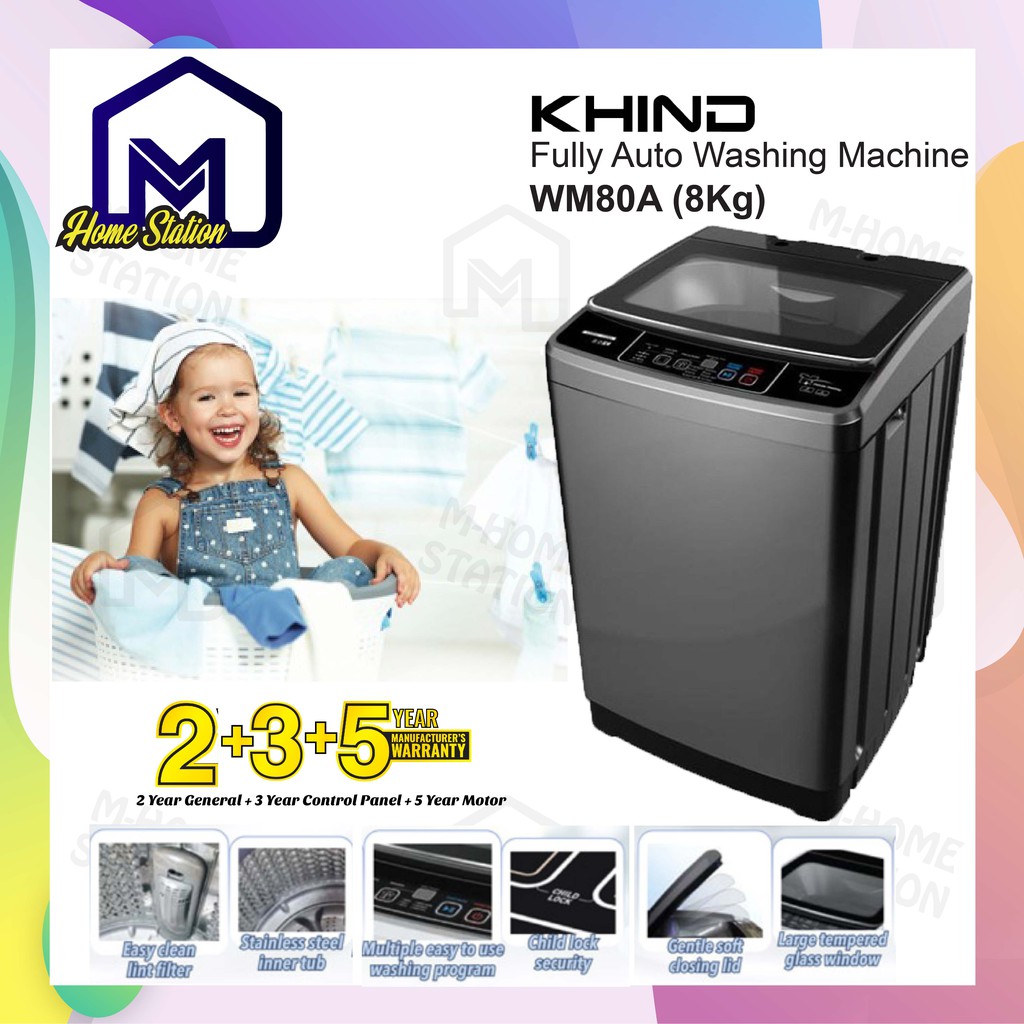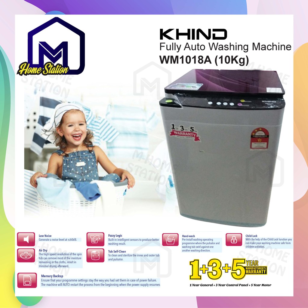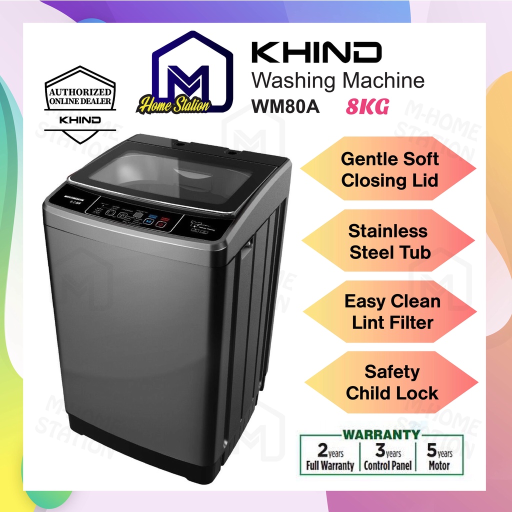 <NEW MODEL> Khind Fully Auto Washing Machine ( 8kg ) Mesin Basuh WM80A / ( 10kg ) WM100A [ REPLACEMENT WM818A ]