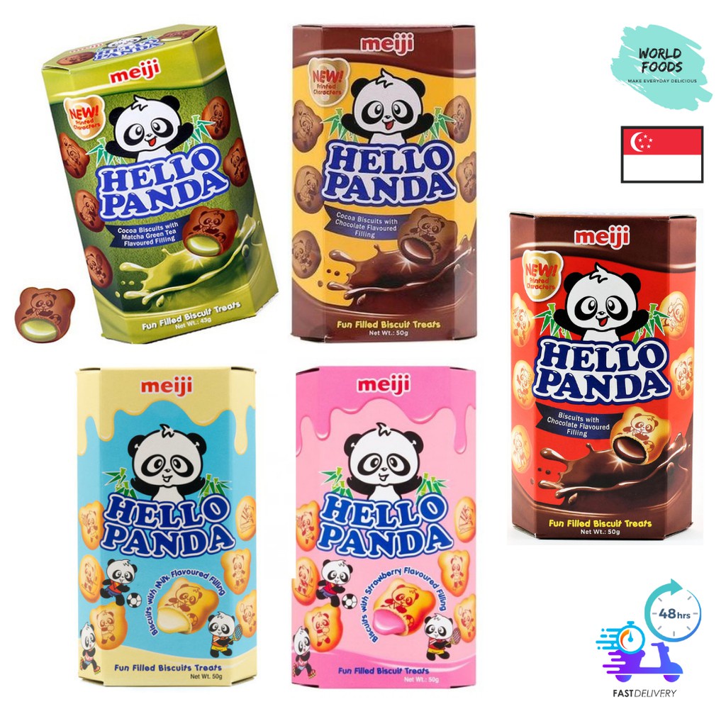 [NEW] Meiji Hello Panda Chocolate / Strawberry / Double Chocolate / White Chocolate Cookies 43g