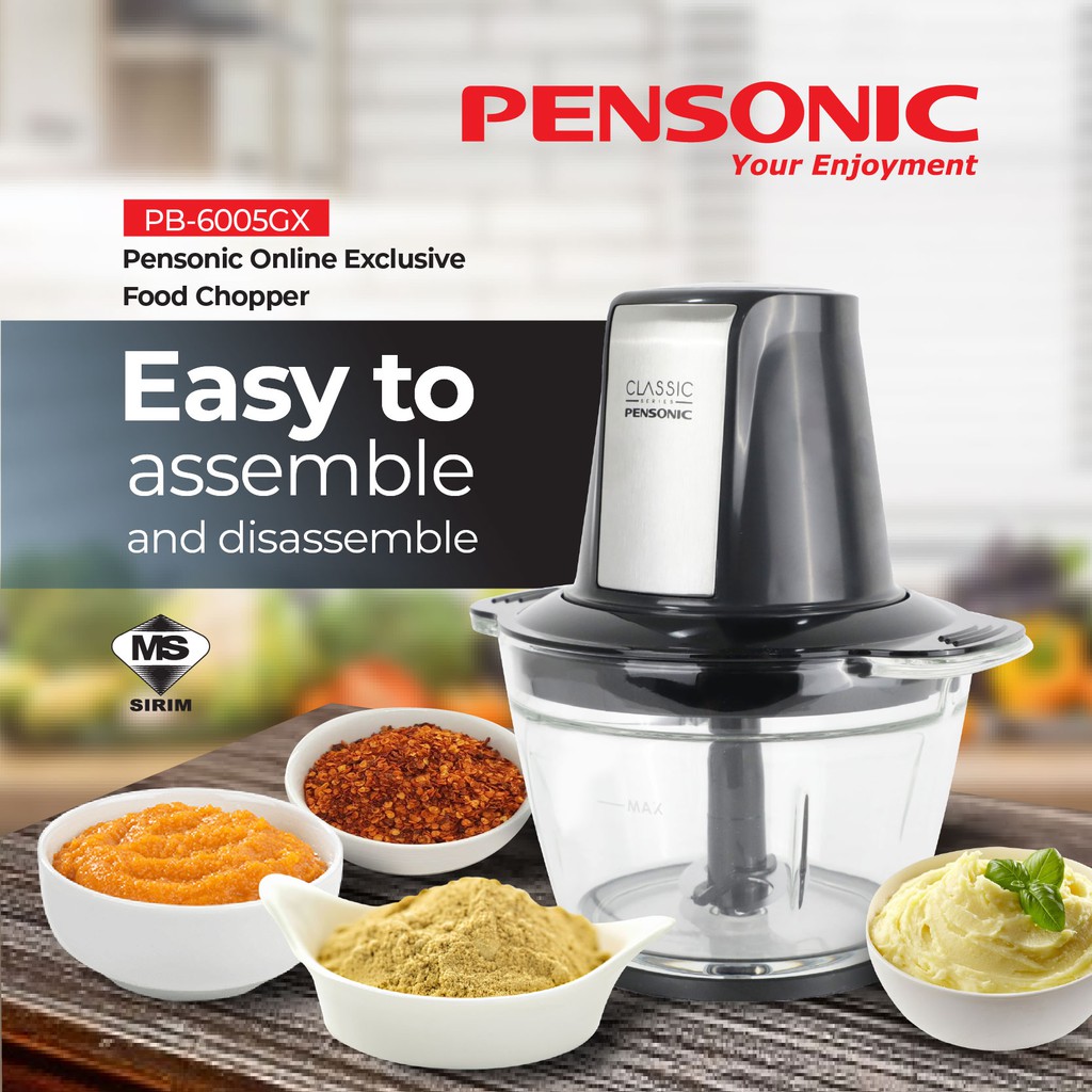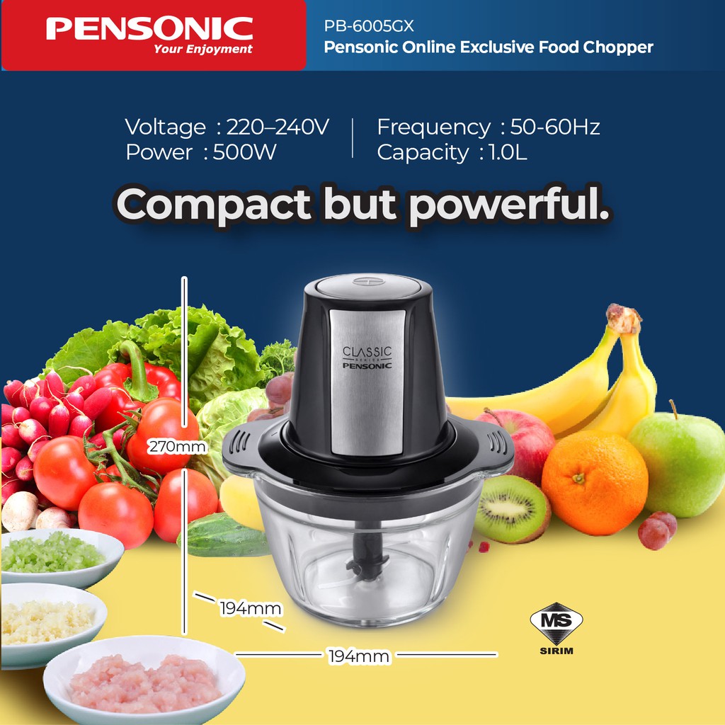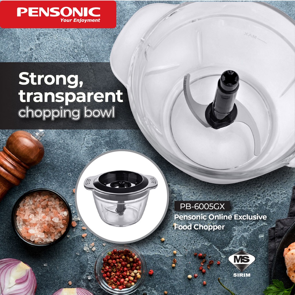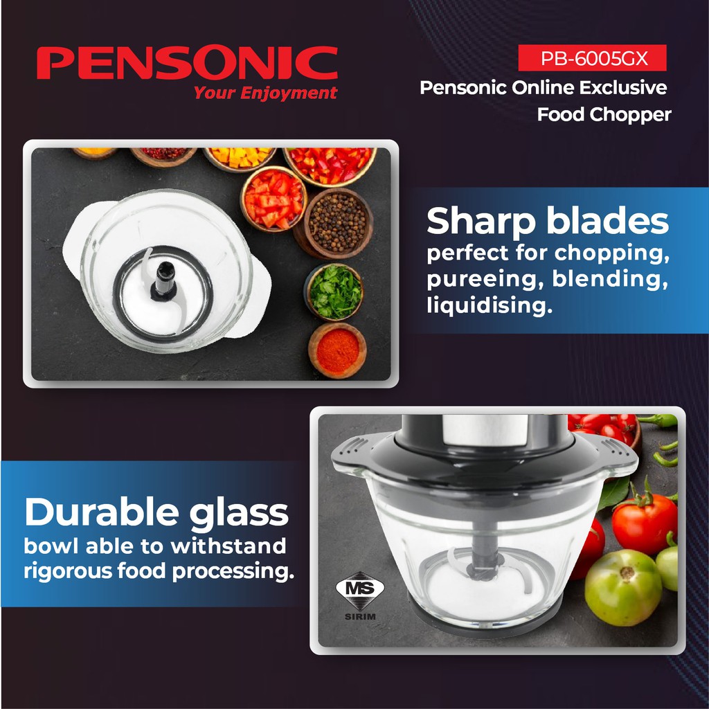 Pensonic Electric Chopper | Chili Onion Garlic Blender Meat | with Glass Bowl (1L) | PB-6005GX
