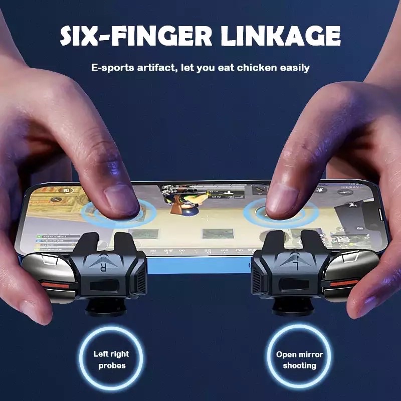 [NEW] PUBG Trigger Controller Mobile Phone FPS Shooting Game Handle Joystick Six Fingers Metal Button For Android iPhone