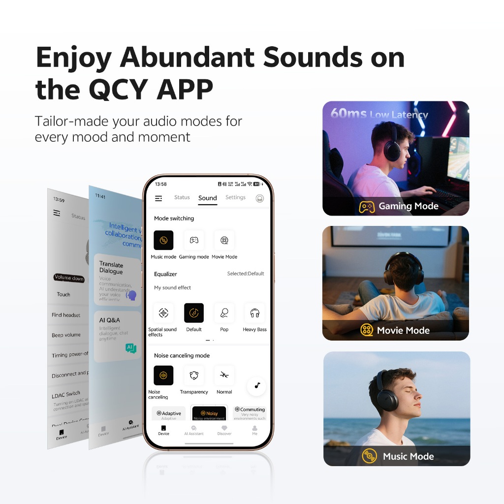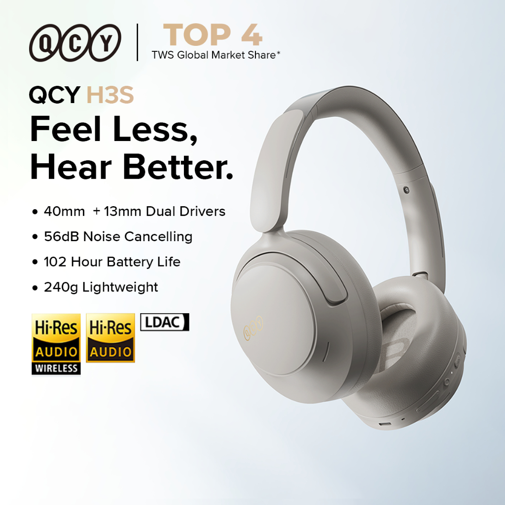 QCY H3S Hi-Res LDAC Over-Ear Headphone | BT6.0 | -56dB ANC | 40mm+13mm Dual Drivers | Built-in Mic