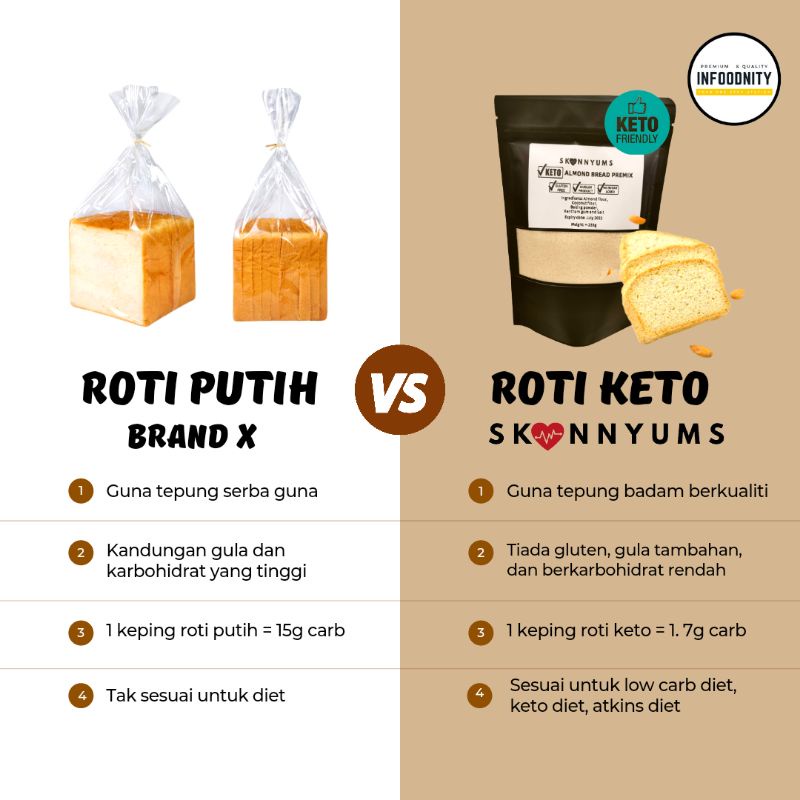[NEW] Skinnyums Keto Almond Bread Loaf Keto Premix Flour Keto Baking Tepung Keto Roti Badam Tepung Atkins Low Carb Flour
