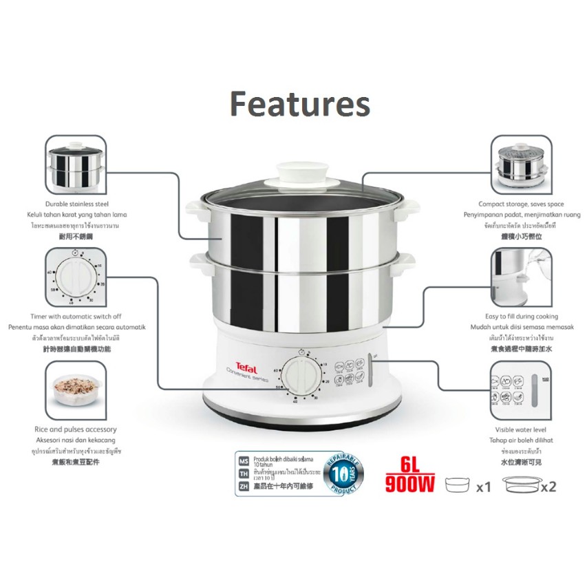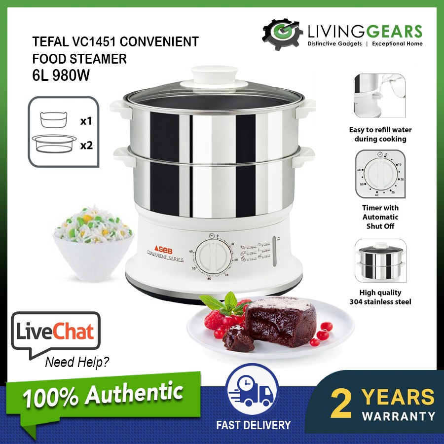 Tefal Compact 2-Tier VC1398 (6L) VC1401/(9L) VC2048 3-Tier Food Steamer/Tefal Stainless Steel Food Steamer (6L) VC1451