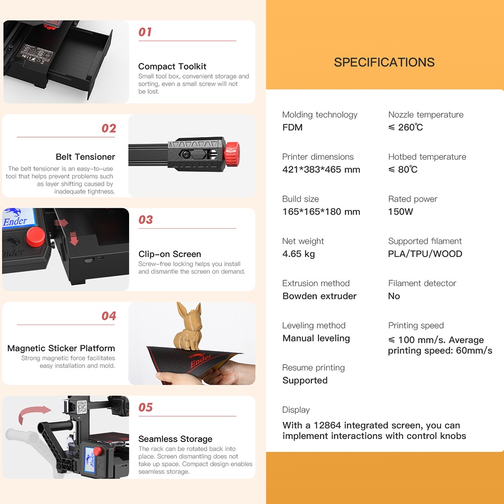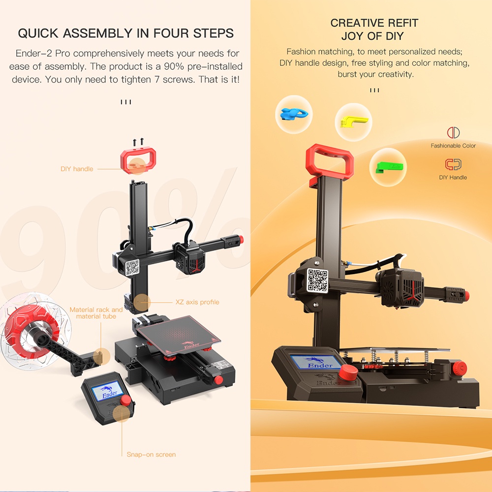 [New Arrival] Creality Ender 2 Pro 3D Printer Super Portable Beginner Friendly 80C PLA TPU WOOD 165*165*180mm