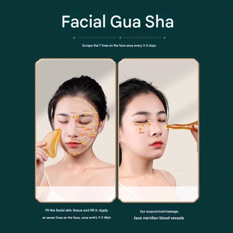 [New] GuaSha Facial Tools Set Scraping Slimming Massage Tool Facial Scraping Plate Acupoint Pressing Stick Lifting Massager Dredge Meridians Promote Blood Circulation Relaxation
