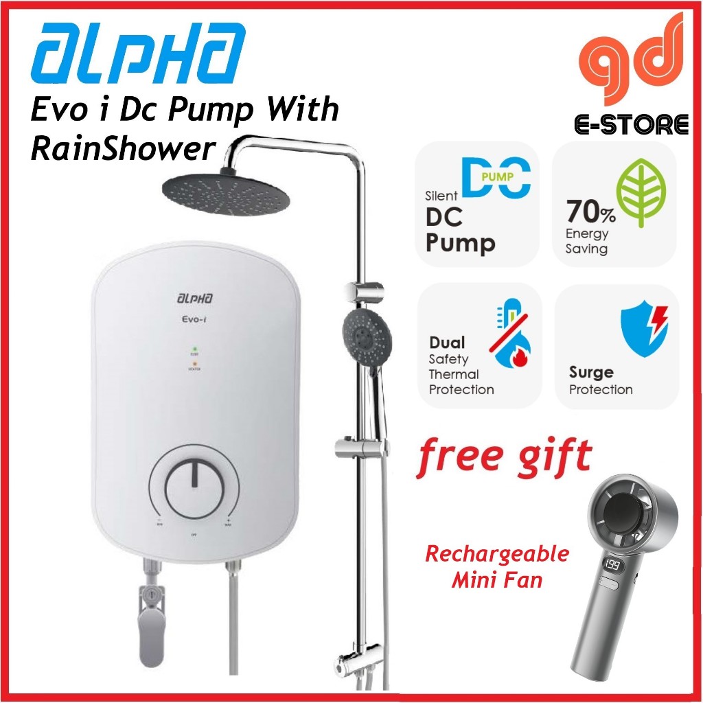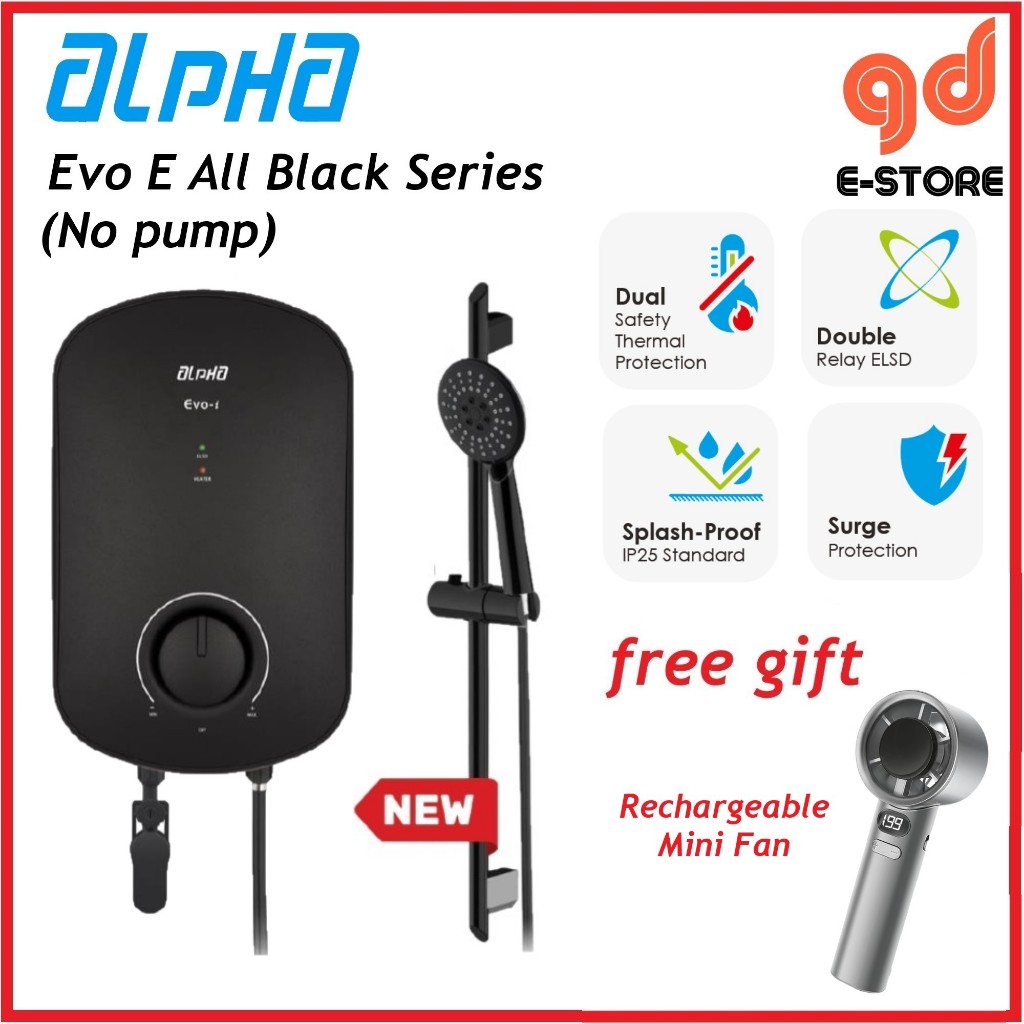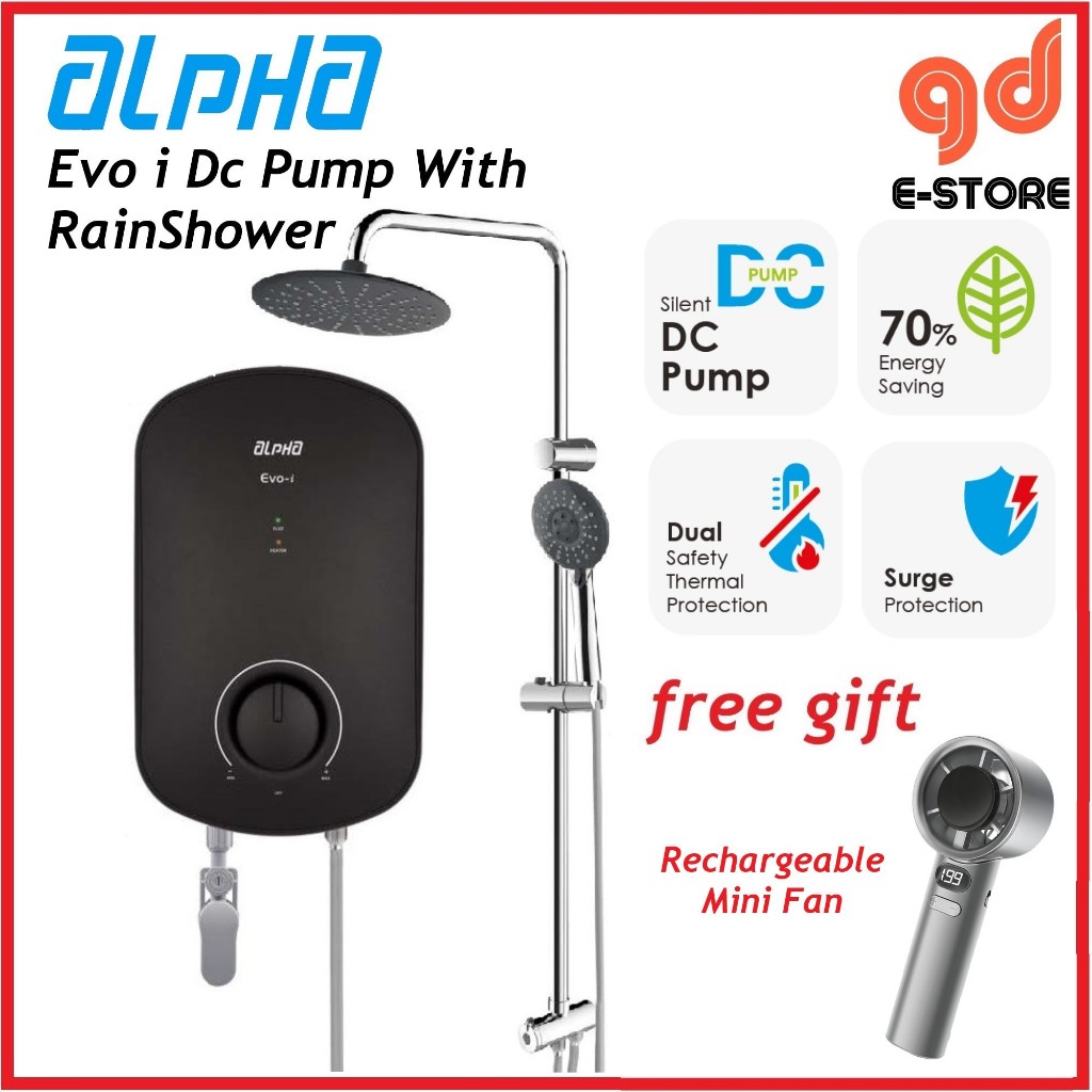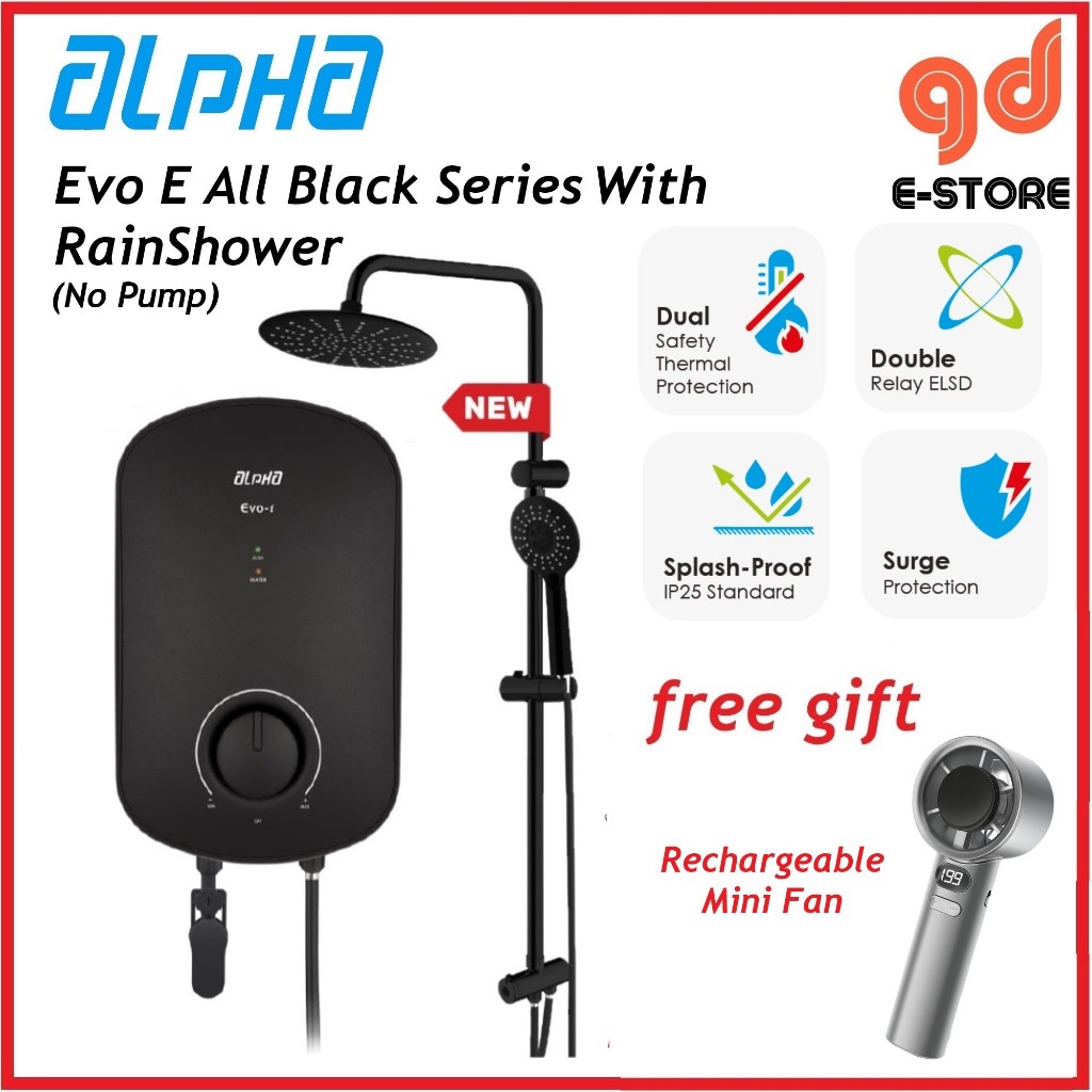 [Free Gift] Alpha Evo i DC Pump Evo E No Pump Instant Water Heater White Matt Black Rain Shower