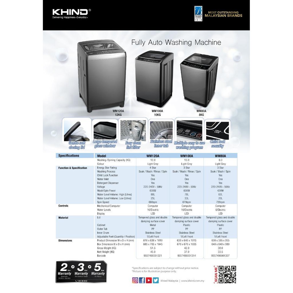 [New Model 2021] KHIND 10Kg FULLY AUTO WASHING MACHINE WM100A