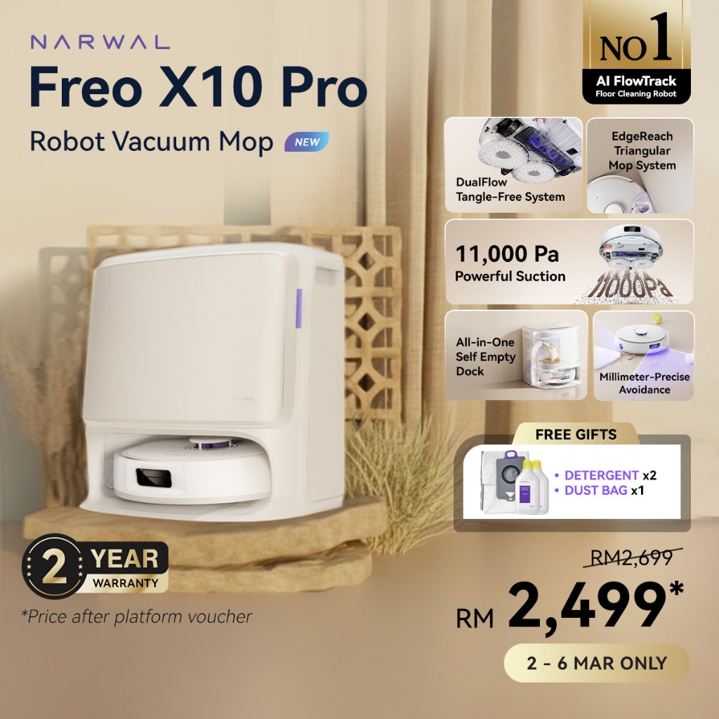 [New] Narwal Freo X10 Pro Robot Vacuum and Mop | Tangle-Free System | EdgeReach Mop Extension