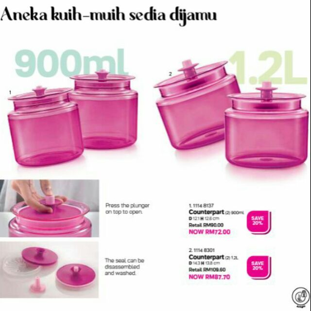 <New> Tupperware Counterpart 900ml / 1200ml (Balang Kuih Raya) per unit