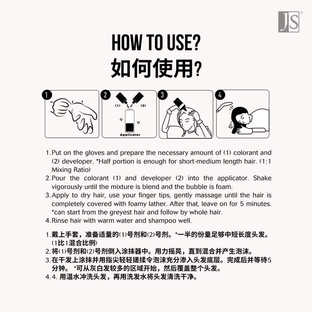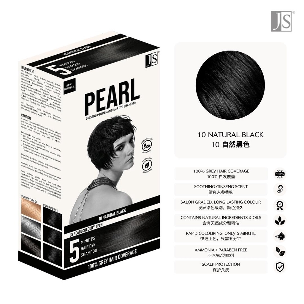 JS Black Pearl dye Shampoo And Conditioner 60ml .只需5分钟,白发变黑发i