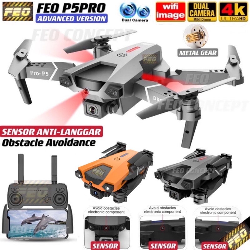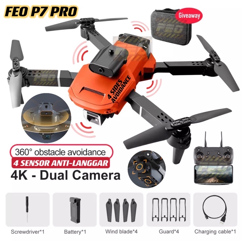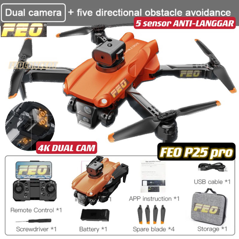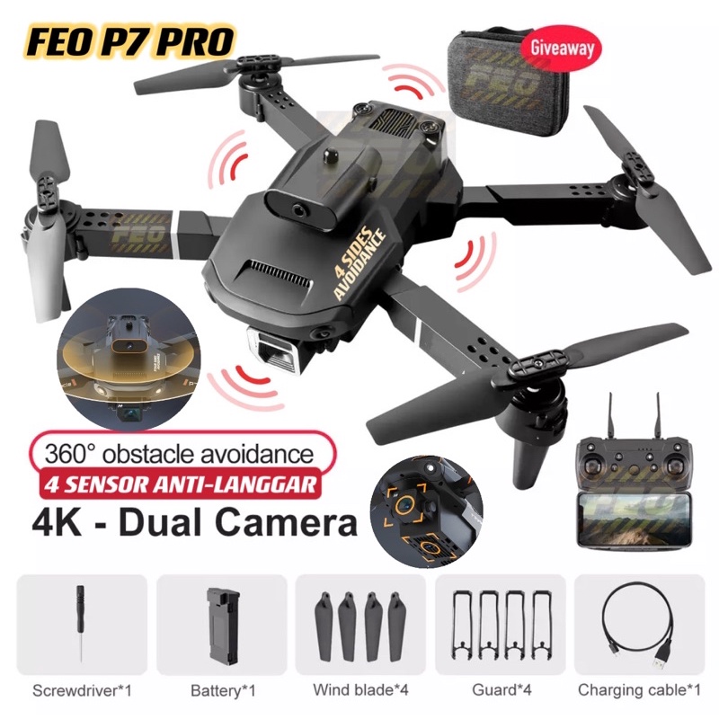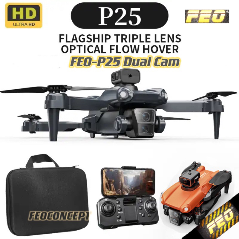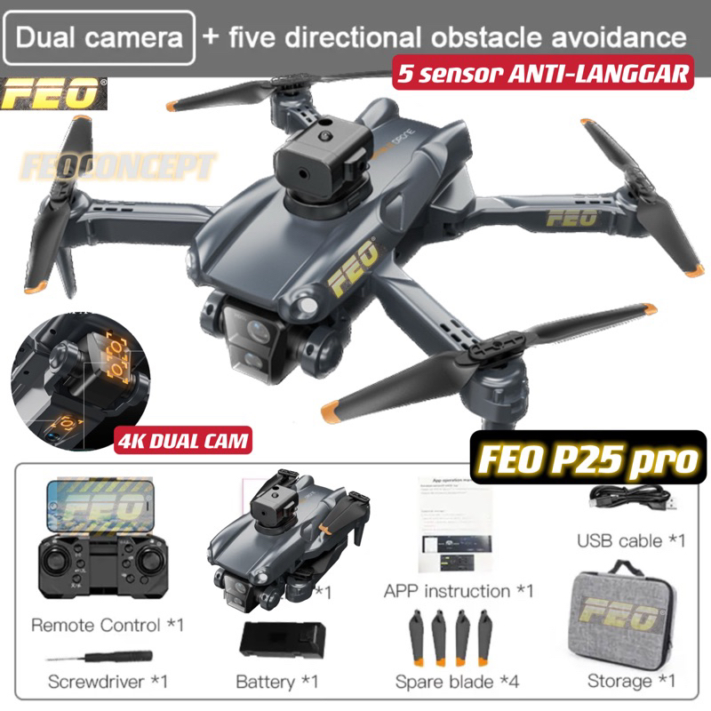 [OBSTACLE AVOID ANTI-LANGGAR]DRONE FEO P25 P7 Pro MAX 4K DUAL Cam WIFI RC DRONE With Camera Fold Drone Quadcopter Drones