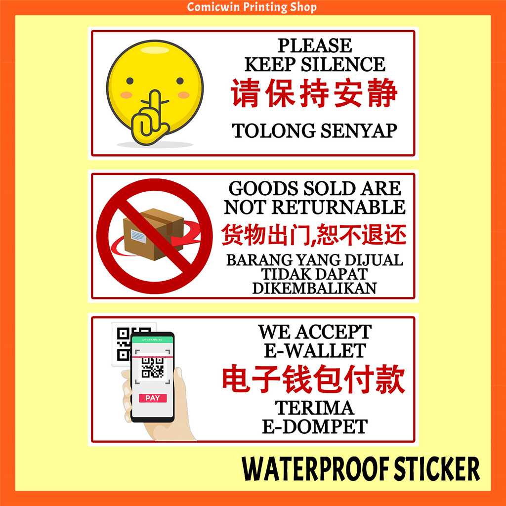 [OFFER] Big Size Office Shop Signage (12x29.5cm) Cashier, Please Queue, Close Door, Staff Only, Self Service Sticker
