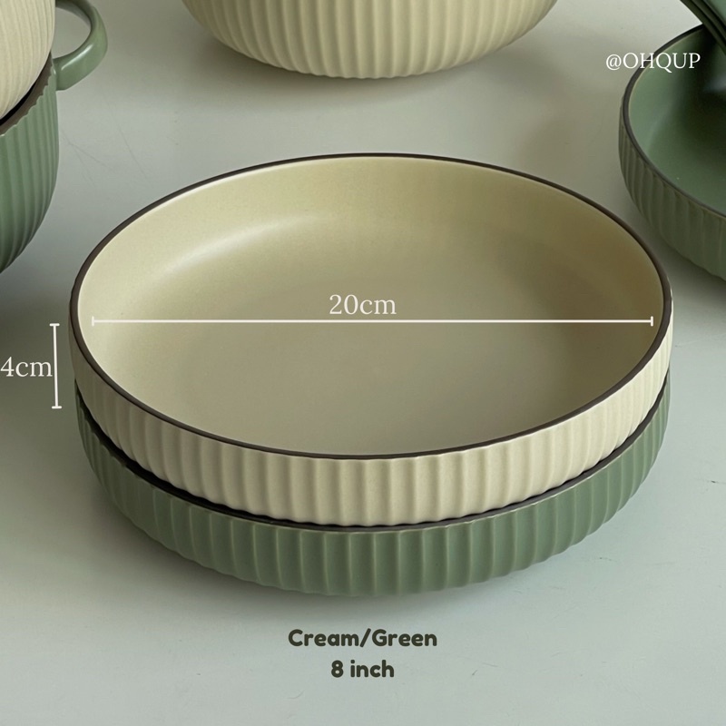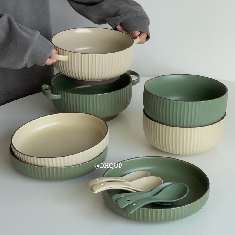 [OHQUP] Ins nordic ceramic bowl plate stripes tableware noodle bowl/ soup bowl/ dinner plate/ ceramic spoon