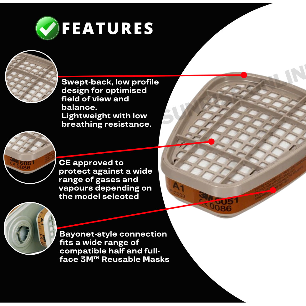 [ORIGINAL] 3M 6051 A1 Organic Vapor Cartridge(1 Pack = 2 Pcs) 3M Cartridge 3M Mask Filter Respirator Filter Mask Filter