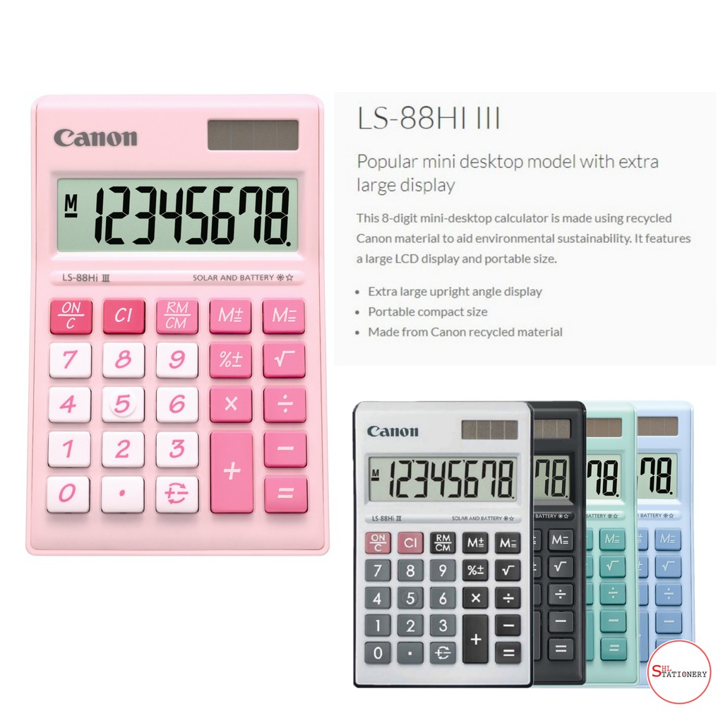 [ORIGINAL] CANON LS-88Hi III 8-Digit Electronic Solar Battery Desktop Calculator White / Black / Green / Pink / Blue