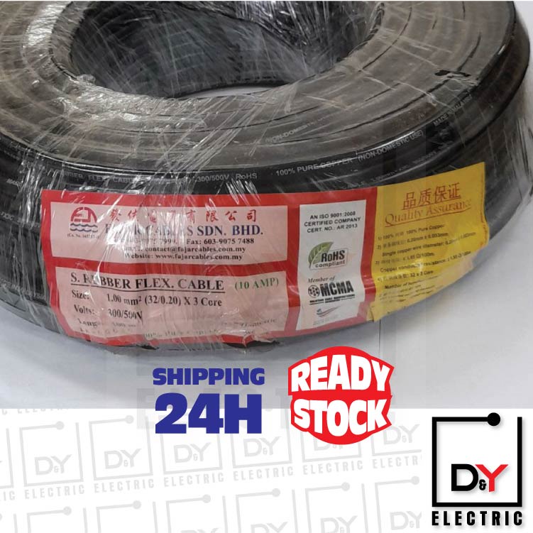 [ORIGINAL] Fajar Cable Black 3 Core 1mm 100Meter TRS RUBBER FLEXIBLE Cable