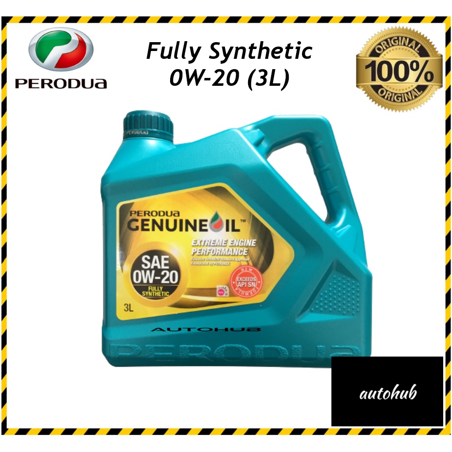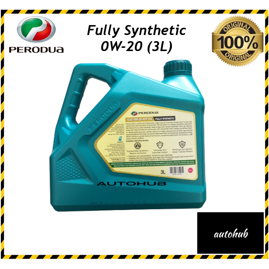 [ORIGINAL] Perodua 0W20 Fully Synthetic Engine Oil Lubricant Minyak Hitam New Packaging 3L (3 Litre)