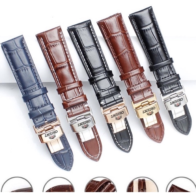[Orient Leather Strap] High-End Orient Watch Leather Strap. String Combo With Butterfly Buckle Orient logo