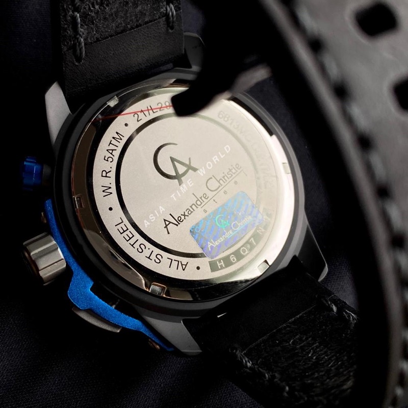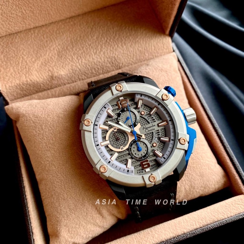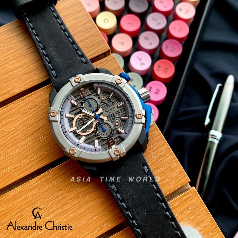 [Original] Alexandre Christie 6613 MCLTBGRBU Chronograph Men Watch with Grey Dial Black Genuine Leather