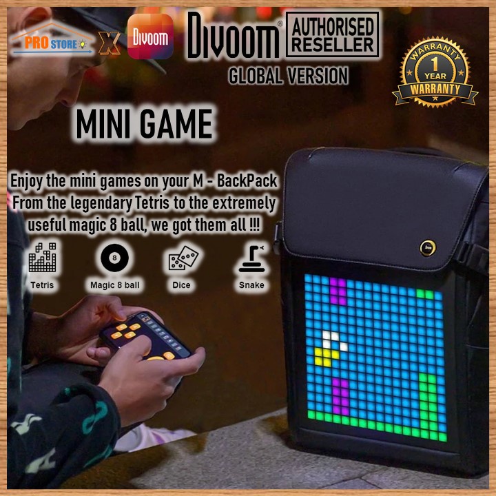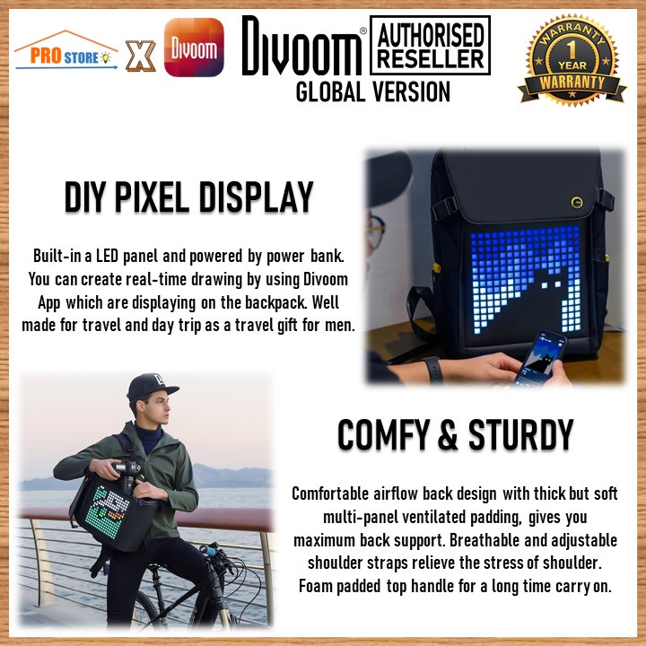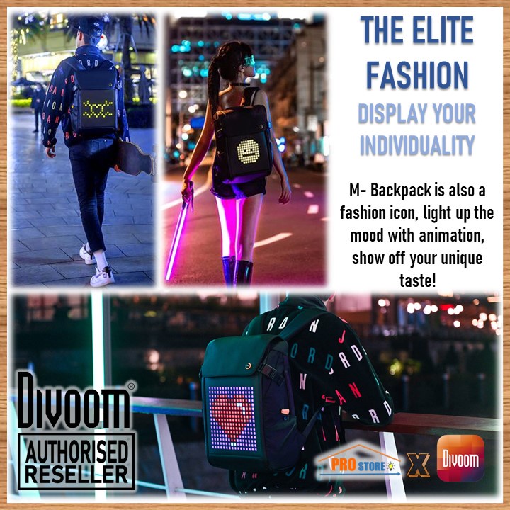 [Original] Divoom Pixoo M BackPack RGB With Smart LED Pixel Art Display Waterproof Back Pack Customizable Design Feature
